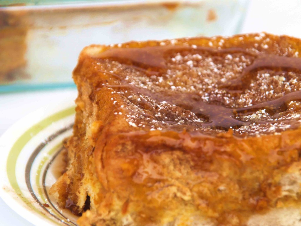 Take the cover off for the last 10-15 minutes until the top is the consistency of regular french toast. (You can even throw under the broiler for a couple minutes to help get a nice crust, but watch it closely as the sugar caramelizes and can get really hard!) Take out of the oven.